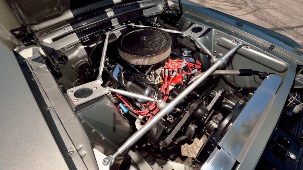 Под капотом этой установлен чугунный фордовский 351-й Small Block, то есть V8 с рабочим объёмом 5,8 л, с алюминиевыми головками, системой зажигания MSD, впускным коллектором Edelbrock Performer, выпускными коллекторами из нержавейки и боковыми глушителями MagnaFlow. Отдача не сообщается, но вряд ли она меньше стоковых 300 л.с., а система впрыска закиси азота даёт кратковременную прибавку в 100-125 «лошадей».