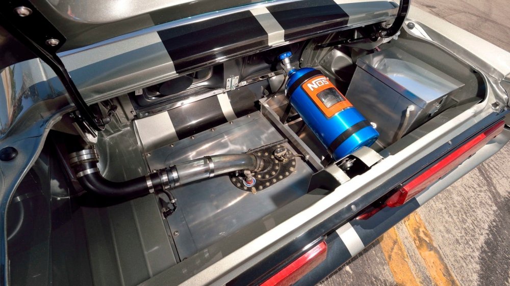 Коробка передач – 5-ступенчатая «механика» Tremec TKO, рукоятку переключения Hurst которой украшает надпись Go-Baby-Go (можно перевести как «давай, детка, давай»). Доработанная подвеска – от Total Control Products. Дисковые тормоза – от Wilwood. Фары – от PIAA. В салоне – деревянное рулевое колесо LeCarra, алюминиевые педали TCP, широченные олдскульные гоночные ремни безопасности и установленный на рулевой колонке тахометр Auto Meter Sport Comp с предельной отметкой в 10 000 об/мин.