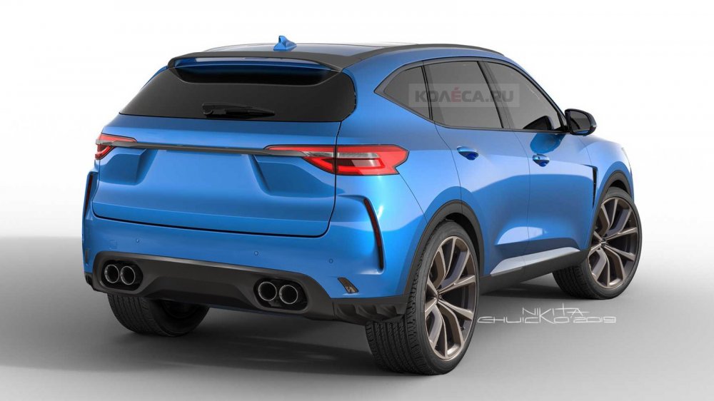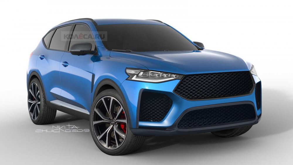 Многие сравнивают внешность Haval F7 с английским кроссовером Jaguar F-Pace, и именно его стилистика (точнее, версии SVR) была использована при создании этого проекта.