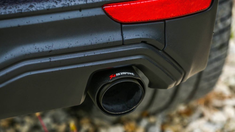 Выпускную систему переделывали несколько раз – Арсению никак не нравился звук, то громкий, то слишком тихий. Итоговым решением стал прямоток: труба диаметром 63 мм из хромированной нержавейки начинается прямиком от турбины и в конце расходится на две стороны, оканчиваясь оригинальными насадками Akrapovic от BMW M5 в кузове F10. Теперь звук выхлопа идеальный – достаточно громкий, басистый, но при этом не перекрывающий свист турбины, которую тоже слышно.