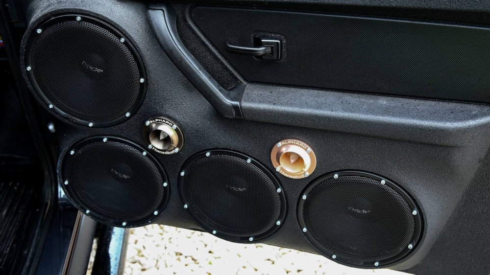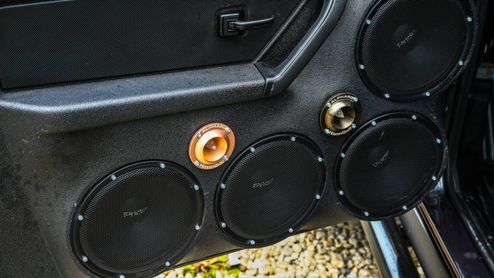 Новые дверные карты с подиумами под динамики Арсений взял со своей прошлой Нивы: в свое время они были изготовлены на заказ одним его хорошим знакомым. Так в Bronto появились четыре пары Pride Solo 8 и усилитель Pride FR 1500/2, сабвуфер Alphard Deaf Bonce DB-412 и усилитель Stetsom EX 8000 EQ – 1 OHM, две секции литий-титанатных аккумуляторов, генератор повышенной мощности AZ-13 SPL Power 320 и головное устройство Alpine UTE-92BT. Установкой музыки Арсений занимался самостоятельно, а настройку системы доверил профессионалам.