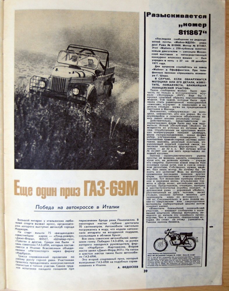 Спортивные достижения команды Марторелли освещал даже советский журнал «За Рулем»!