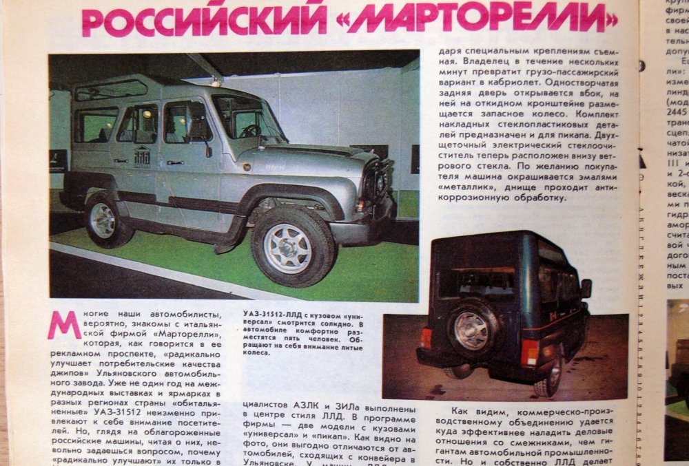 УАЗы от Марторелли неоднократно становились участниками тест-драйвов и даже попадали на обложки европейских автомобильных изданий тех лет