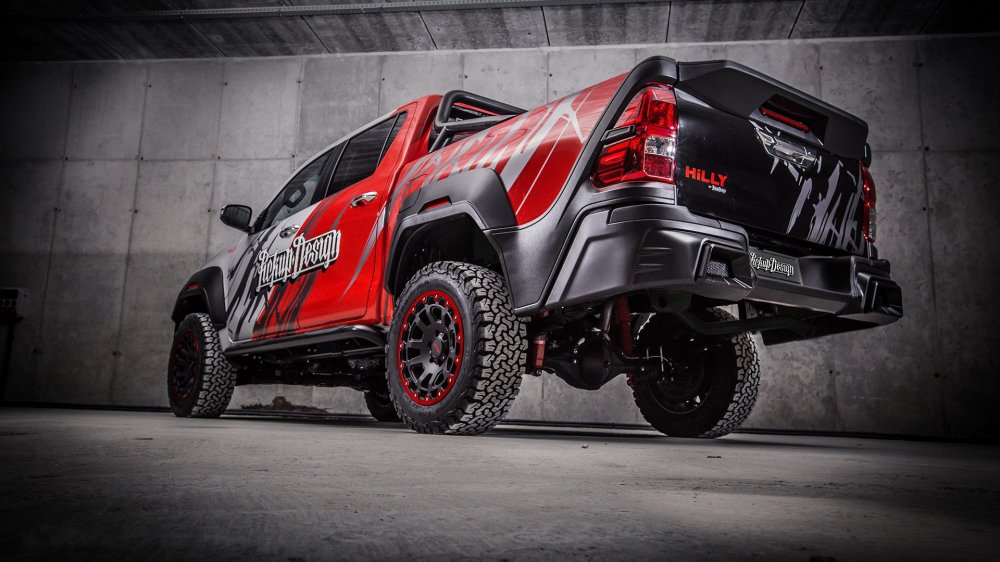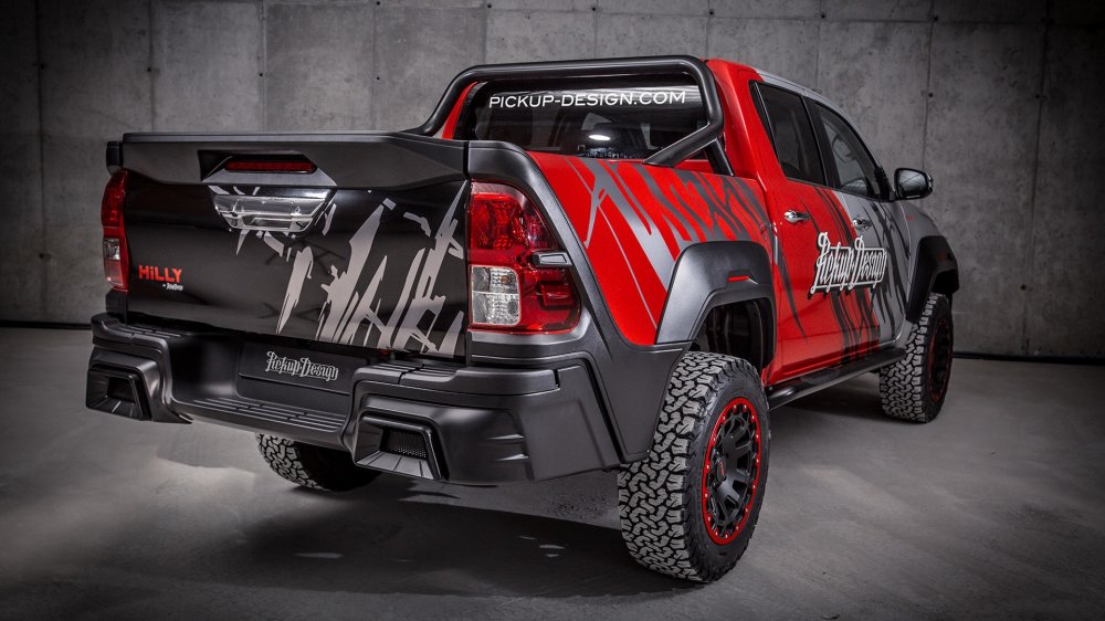 Toyota Hilux получил в польском ателье новые бамперы, расширенные колесные арки, спойлеры, пороги и ковш воздухозаборника на капоте. Разработчик заявляет, что все вышеперечисленные элементы выполнены из «высотехнологичного полимера».