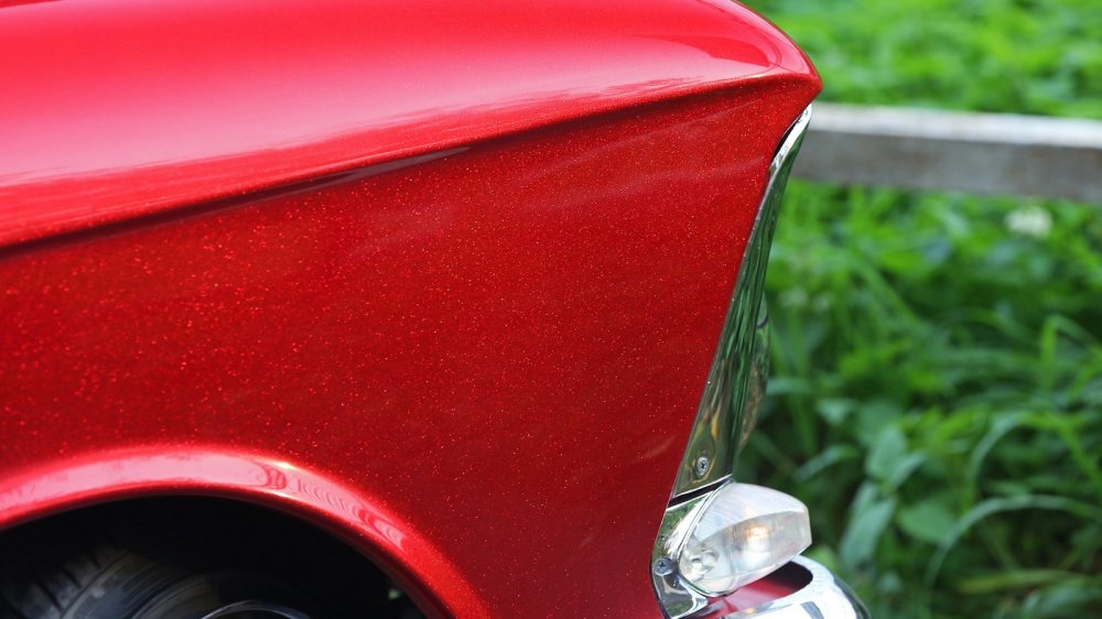 Поскольку над автомобилем трудились два человека, компромисс в определении цвета для кузова Москвича искали долго. Итоговым стал непростой вариант из нескольких ступеней. Первым этапом стало нанесение серебряного металлика. Вторым – покрытие лаком Candy red, который смешали со специальными блестками (они дают более яркий эффект на солнце). Ну а крышу при этом сделали белой.