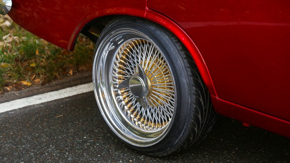 Дальнейшая судьба почтенного «аристократа» была предопределена покупкой новых колес. Однажды Дима примерил на автомобиль 16-дюймовые спицевые диски Dayton Wire Wheels. На удивление, они вошли ровно по аркам, хотя машина с завода вышла на 13-х колесах! Было ясно, что при движении кромка крыла упрется в диск с резиной, поэтому пришлось идти путем подбора. В итоге остановились на самой узкой резине, которую надели "домиком", чтобы колеса влезли в арки. Сразу после примерки дисков, результат которой привел в восторг абсолютно всех, возникла идея установить пневмоподвеску.