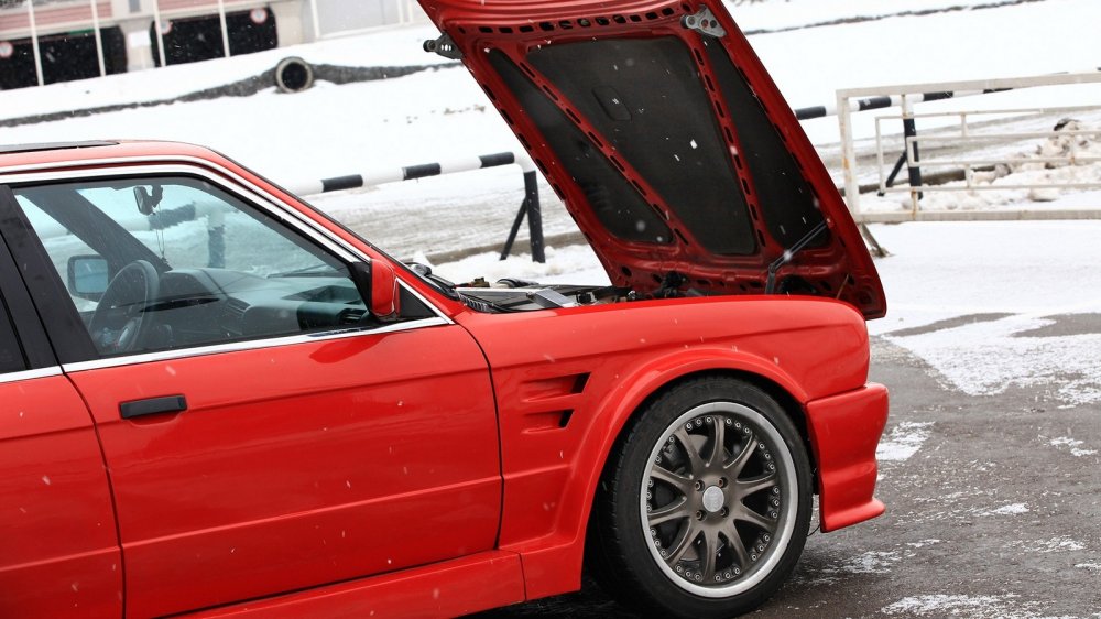 На момент покупки у этой Е30 уже был немного изменен облик – расширены арки и пороги. А в движение ее приводил старенький четырехцилиндровый М10 с карбюратором от Жигулей и радиатором от них же – видимо, попытка предыдущих хозяев сэкономить на родных запчастях. Да и расширение было создано незамысловатым образом: килограммы шпатлевки и монтажной пены… Однако, простояв на морозе длительное время, автомобиль завелся с пол-оборота, чем окончательно и подкупил.