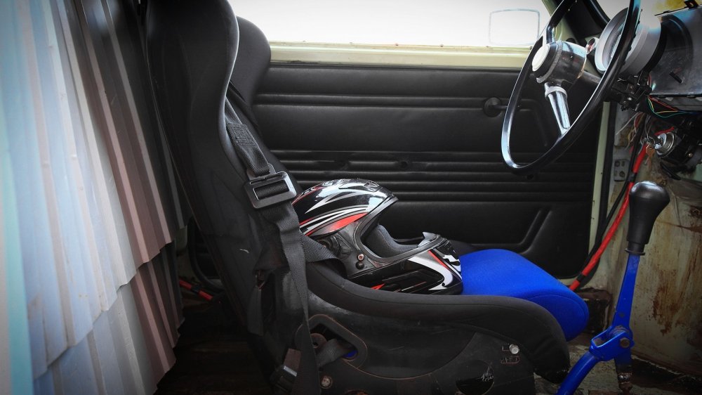 К сожалению, сохранить внутри ту же добрую долю аутентичности, что и снаружи, не получилось. Задние сиденья, разумеется, ушли в прошлое, уступив место мотору. Передние не обеспечивали ни должной «усидчивости», ни какой-либо безопасности, потому тоже справедливо отправились в гараж, сменившись единственным водительским ковшом. Та же участь постигла и переднюю панель, и приборный щиток – работать с указателями тридцатилетней давности не стали, списав их в запас. Единственное напоминание о советских временах – дверные карты, покрытые дерматином.