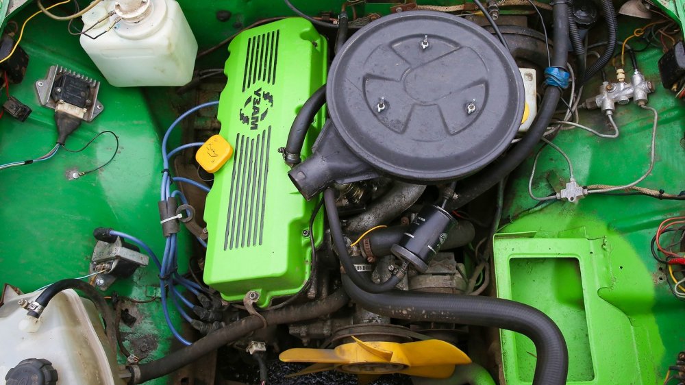 В непростом деле преображения автомобиля помогал тот самый друг Алексей, в прошлом механик ралли-рейдовой команды. Первым этапом, прямо как в JDM-тематике, стал своп: под капот поставили 1,7-литровый мотор УЗАМ от Москвича-2141 (который по паспорту располагает 86 л. с.), так как старый был изрядно изношен. Двигатель встал без проблем – необходимо было лишь поменять опоры, поддон и маховик с подшипником первичного вала в нем.