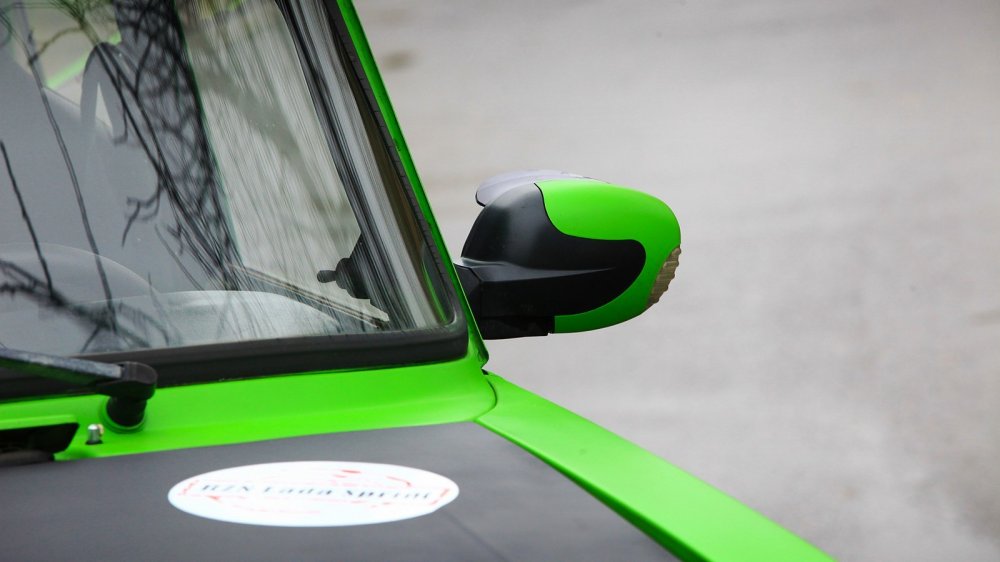 После первичного восстановления кузова дальнейшие доработки были довольно нехитрыми, что логично для такого проекта. Качественная перекраска подарила автомобилю ухоженную внешность, а черный капот – намек на спортивный уклон в эксплуатации. Все внешние элементы, впрочем, остались на своих местах: несмотря на то, что многие спортсмены удаляют с автомобилей бамперы, молдинги и другие «лишние» детали, Максим их сохранил. Содрогание у любителей каноничного стока, пожалуй, могут вызвать лишь зеркала заднего вида – но поскольку здесь на первом месте стояла функциональность, неудобные штатные «лопухи» пали ее жертвой.