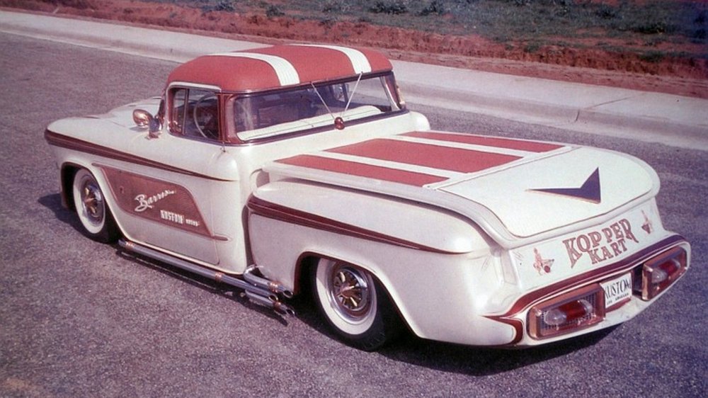 Идея была проста: взять утилитарный пикап и переделать его таким образом, чтобы даже дремучий реднек не вздумал бы возить на оном навоз. Создание такой машины заняло несколько лет, и впервые Джордж продемонстрировал ее возможности лишь в 1956-м. К тому времени Сэм ушел из бизнеса, и ателье с Barris Brother’s Custom Shop сменило вывеску на Barris Kustom Industries. Не миновала любимая игра слов и новый проект Джорджа – Kopper Kart. Изначально название идентифицировало в нем «медную тележку», но заменив буквы «С» на «К» в начале слов, Баррис получил непереводимую фразу.