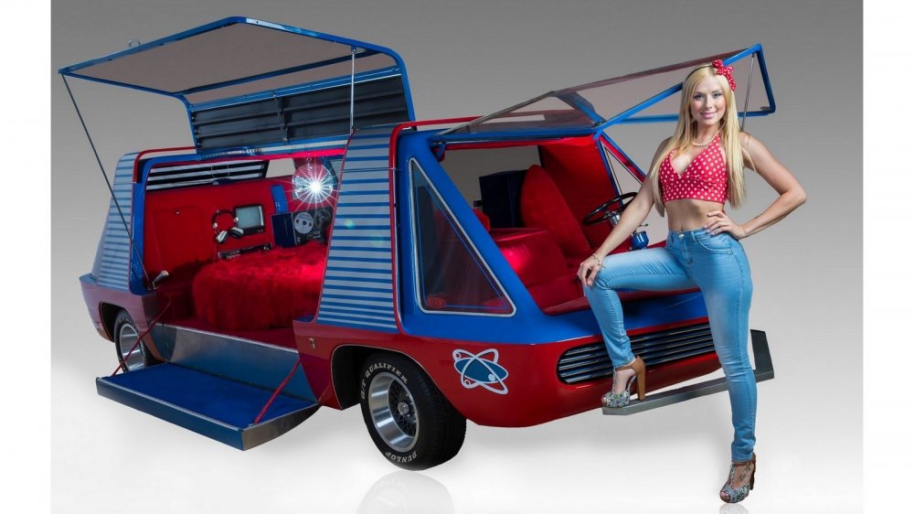 Джордж закончил проект к 1969 году, в преддверии Лета Любви, и снова опередил события. «Хипповозки» VW Transporter по сравнению с этим футуристичным концептом казались такими же безнадежными, как букет несвежих ромашек на первом свидании. Баррис сделал свой Dodge практически симметричным, отчего кабину с кормой легко было перепутать. Двери в этом авто отсутствовали как класс, что лишь усугубляло неразбериху. Их функции выполняли… стекла: V-образное лобовое и панорамное боковое. Да, внутрь попасть было не так-то просто, зато интерьер мог побаловать гостя вращающейся круглой кроватью, телевизором, уютными люстрами и глухой плюшевой драпировкой. Баррис и имя такому минивэну придумал соответствующее: Love Machine. Хотя вместо популярного тогда рок-н-ролла эта «машина любви» исповедовала иную религию, диско, о чем свидетельствовал подвешенный к потолку зеркальный шар. А ведь модной она станет очень и очень нескоро.