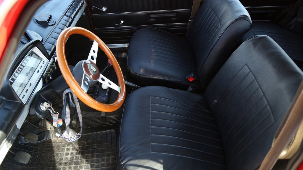 В чем разница между «двушкой» 1981-го и 1974 года? Широкие клыки бампера, торпедо с частыми насечками, приборная панель с узкими прорезями, мутные плафоны освещения салона (такие лучше рассеивают свет), ранняя трапеция дворников, ранняя эмблема задней двери, ранний пластик на центральных стойках – все это придает внешности автомобиля свой шарм. Собрав заветные элементы и закончив с кузовом, дошли и до интерьера. Он был в неплохом состоянии – насколько он может быть неплох в 35-летнем авто. Конечно, внутри было немного грязно, на водительском сиденье разошелся шов. Но немного терпения – и запачканный салон уже вычищен, а сиденье разобрано и зашито.