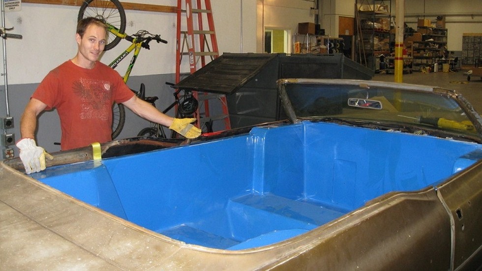 Решив, что 40-летний дредноут годится лишь на бассейн, они с корнем выдрали кресла и прочие элементы интерьера, затем изготовили непромокаемый поддон, для чего сделали каркас из фанеры, затем покрыв его эпоксидной смолой и стекловолокном. Чтобы Cadillac мог нести в себе большое количество воды, ему укрепили раму и переварили кузов. Моторный отсек был дополнительно гидроизолирован, количество приборов на торпедо – сведено к минимуму, а органы управления – заменены на те, что используются для морских судов. Следом парни затеяли долгий процесс покраски: новый цвет кузова один в один повторял «синий металлик» винтажного спорткупе Chevrolet Camaro SS. Завершила оформление «салона» Carpool Deville гидромассажная сантехника, которая могла подогреть воду за счет теплообменника, использовавшего жар выхлопных газов.
