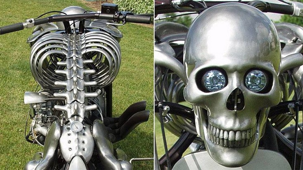 Разве можно обойтись в хэллоуинской подборке без скелетов? Конечно, нет, ведь этот образ во все времена считался традиционным символом праздников, связанных с загробным миром. Наш «десертный» экспонат называется IronDeath, и построил его новичок в деле кастом-проектов, американец Джон Холт. Причем это ему удалось с первой попытки.