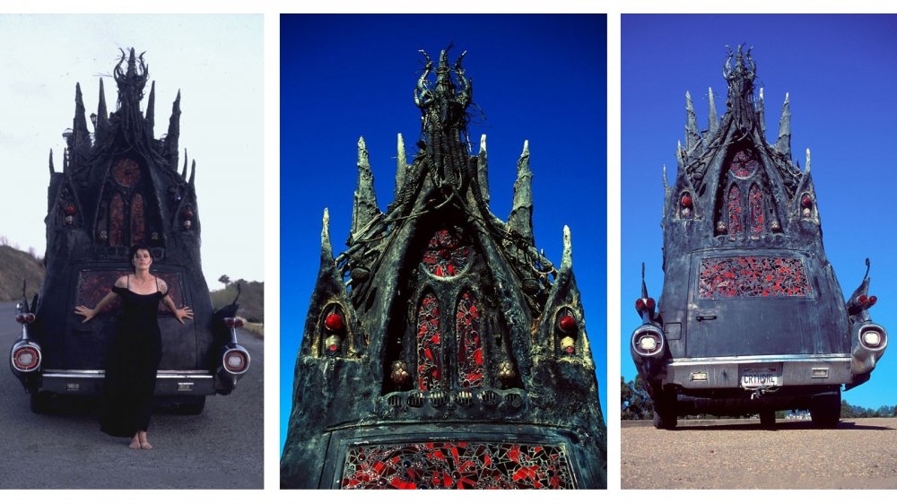 Все дело в том, что Колдуэлл могла увидеть контуры готического замка даже в кубике сахара, поэтому изобразить оный на крыше автомобиля ей не составило труда. Отыскав катафалк Cadillac образца 1971 года, который с экзотичными крыльями и так напоминал колесницу Дракулы, она водрузила ему на крышу остов от горбатого VW Kaefer, а затем с дьявольской подробностью принялась декорировать все это. Наряду с арматурой, стекловолокном и эпоксидной смолой Ребекка использовала в работе такие материалы, как кость, дерево и витражные стекла. В итоге сходство машины с готическим собором оказалось впечатляющим. Кроме башен и стрельчатых окон потрясающей детализации, Колдуэлл украсила свой Carthedral горгульями и установила неоновую подсветку. С ней автомобиль преображался и в темное время суток.