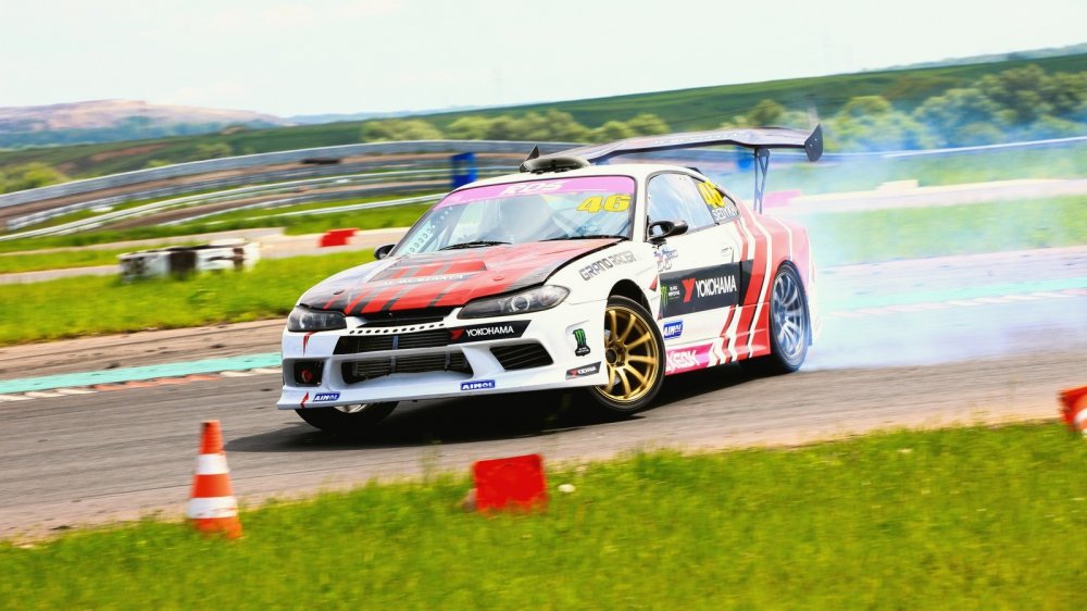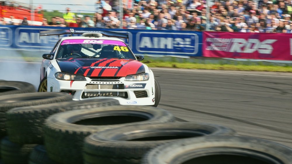 Белоснежная Nissan Silvia, на которой Екатерина Седых выступает в сезоне 2016 на Западе, раньше была синего цвета и принадлежала московскому дрифтеру Георгию Степаняну. На момент покупки в ней уже имелся вварной каркас безопасности, а также еще диковинный на то время двигатель компании General Motors – легендарный LS3. Да-да, это был тот самый «маленький блок» – V-образный, восьмицилиндровый, мощностью около 450 лошадиных сил. Машина была оборудована обычной коробкой передач T56 от Chevrolet Camaro и подвеской, недалеко ушедшей от заводской. При этом она великолепно управлялась, а мотор достойно вытягивал трассы.