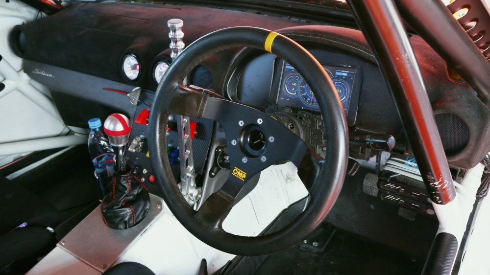 Но и это еще не все технические «фишки»! Для поддержания мощности на низких оборотах на Silvia установлена система впрыска закиси азота NOS, причем управляется она целиком и полностью блоком Holley, никаких кнопок пилоту нажимать не нужно. Перед заездом просто включаешь тумблер – и блок управления двигателем все сделает сам.