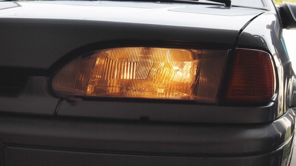 Поскольку в Украине, где живёт владелец, с 1 октября по 1 мая за пределами населенных пунктов необходимо двигаться с включенными фарами, Сергей решил сделать дневные ходовые огни «как на Гранте». Что это значит? Включение нитей дальнего света через спираль с помощью отдельной кнопки позволило в итоге получить полноценные ходовые огни мощностью около 20 Вт (подбирается с помощью сопротивления).