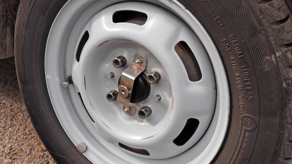Некоторые мелочи на этой модели выглядят слишком «по-тракторному». Именно поэтому болты крепления колес прикрыты колпаками. Деталь самая обычная, из автомагазина, а вот её крепление через П-образную планку и центральную потайную гайку – кастомное.