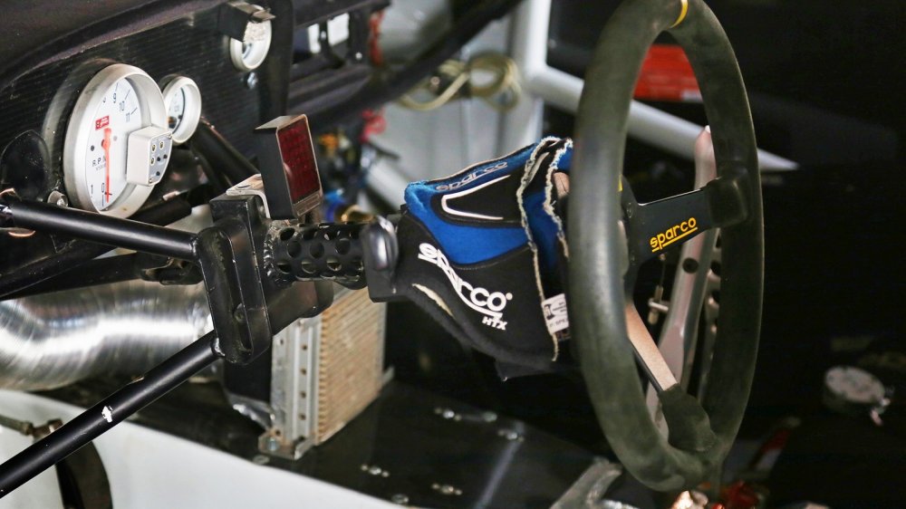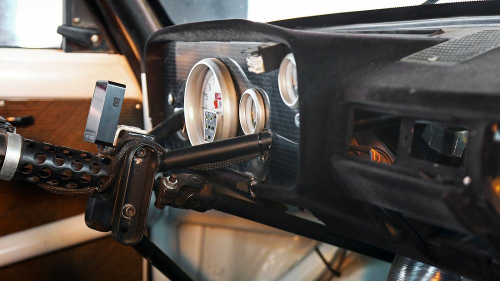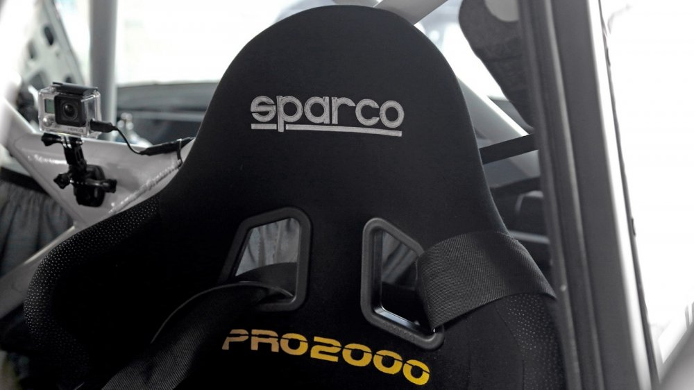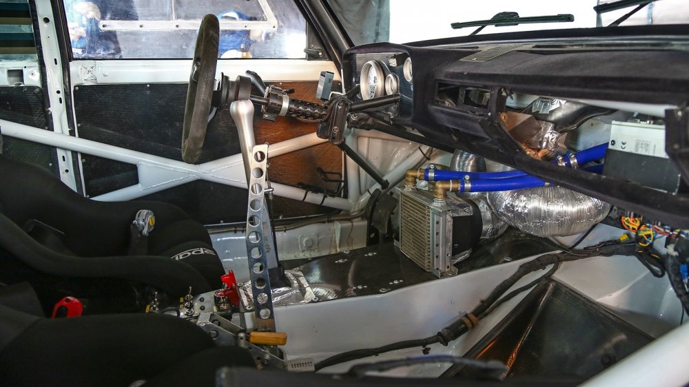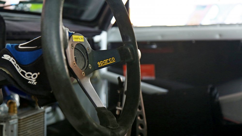 В салоне все по-спортивному аскетично, но удобно. Включение необходимых приборов классически выведено на тумблеры. Для водителя и штурмана установлены спортивные ковши Sparco, этой же фирмы и руль, а педальный узел – Tilton. Тахометр и дополнительные приборы выпущены компанией AutoGauge. Неотъемлемая часть автомобиля – каркас безопасности – сварен с учетом требований регламента класса E9, в котором автомобиль чаще всего выступает в Эстонии.