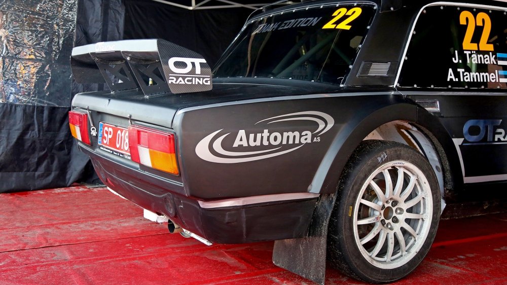 Разумеется, КПП здесь далека от стандартной: установлена кулачковая шестиступенчатая коробка передач с секвентальным переключением производства голландской компании Drenth. Задний мост – от Volvo, рулевая рейка и гидроусилитель взяты от Volkswagen, а тормоза – от Subaru Impreza WRX STi. Подвеска полностью выполнена на шарнирных соединениях, а амортизаторы изготовлены на заказ в Финляндии. Весь аэродинамический обвес, включая крылья, отформован из стеклопластика в гараже раллийной команды, а капот выполнен из карбона.