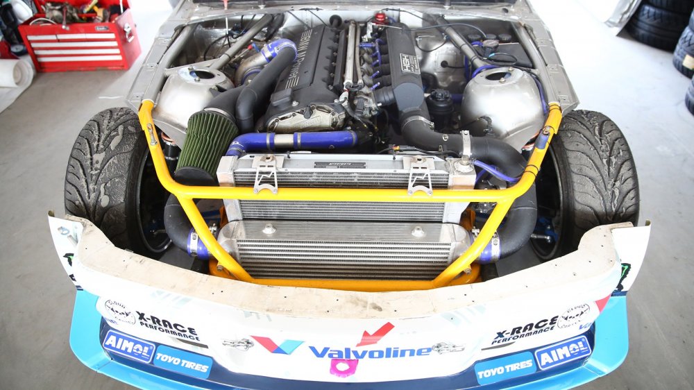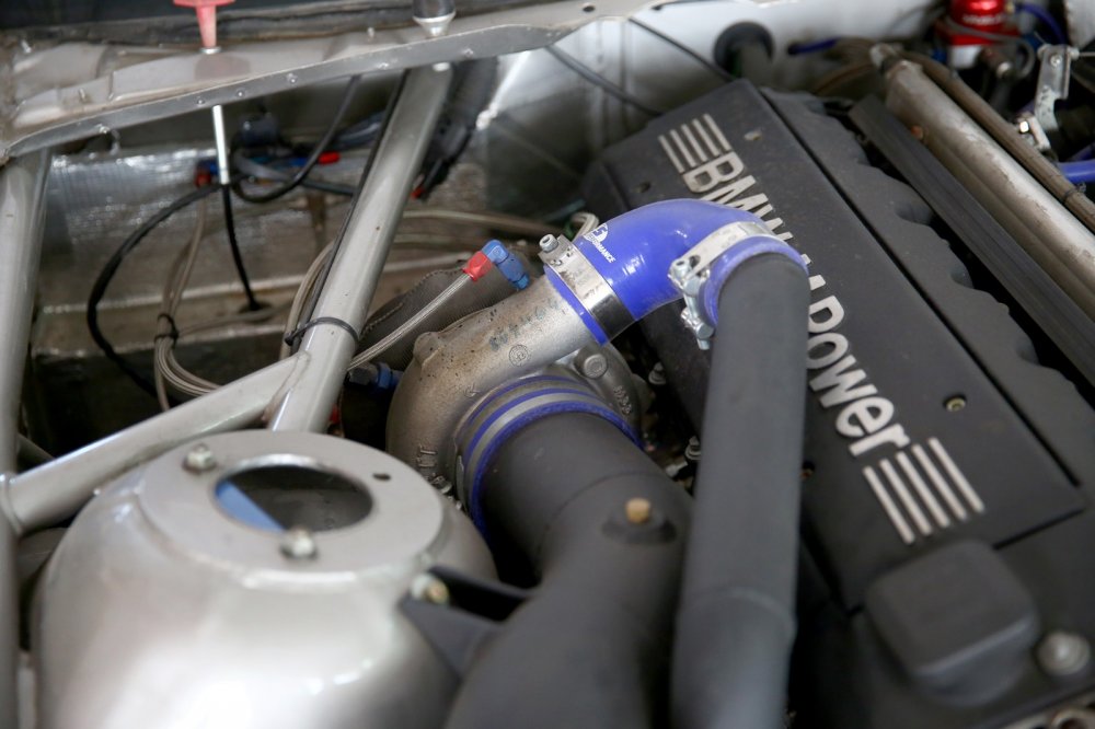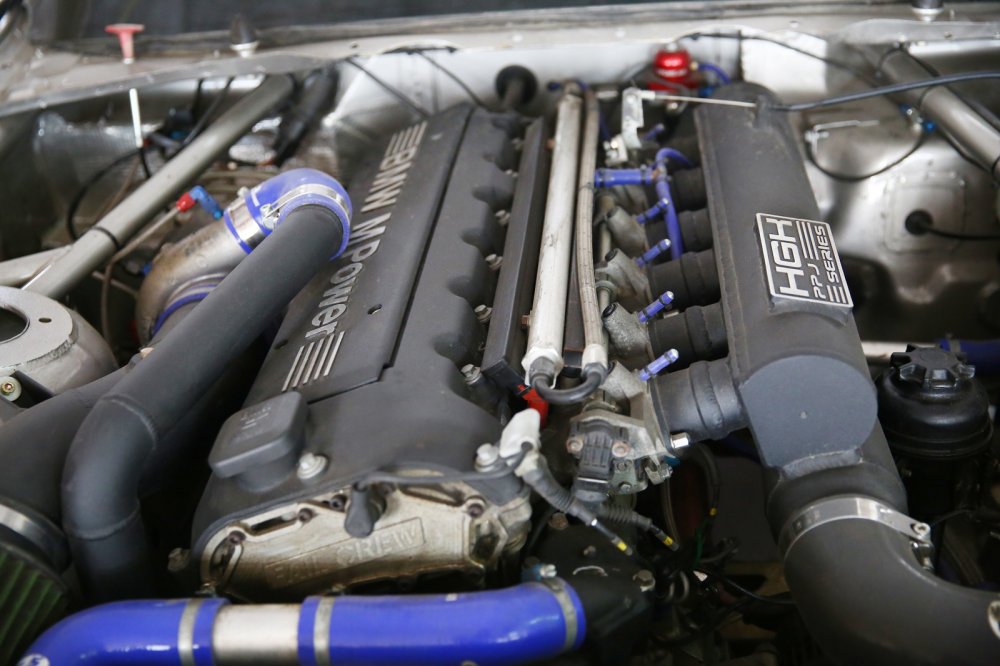 В HGK Motorsport при постройке проектов обычно используют готовые моторы – силовые агрегаты они не собирают. На помощь в подготовке двигателя пришел Илья Беляев. Именно он подарил «сердце» автомобилю, доработав под дрифт BMW-шный S50B30. В качестве турбины был выбран Garrett GTX30R – идеальное сочетание мощности от 500–600 лошадиных сил и раннего отклика. Для правильного размещения «улитки» использовали специальные опоры производства HGK, поскольку потребовалось наклонить мотор (если бы его оставили в родном положении, то выпускной коллектор под турбину пришлось бы тянуть вперед, а это, несомненно, ухудшило бы отклик). Настройку произвели на мощностном стенде в так полюбившейся компании из Риги – HGK.