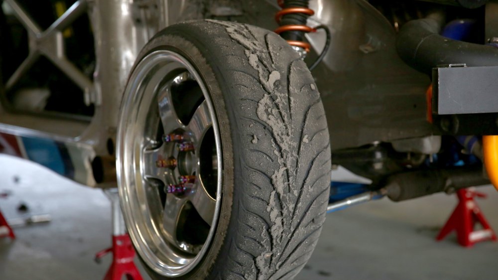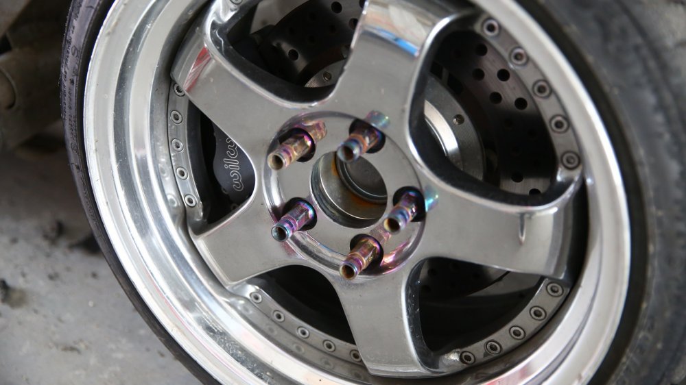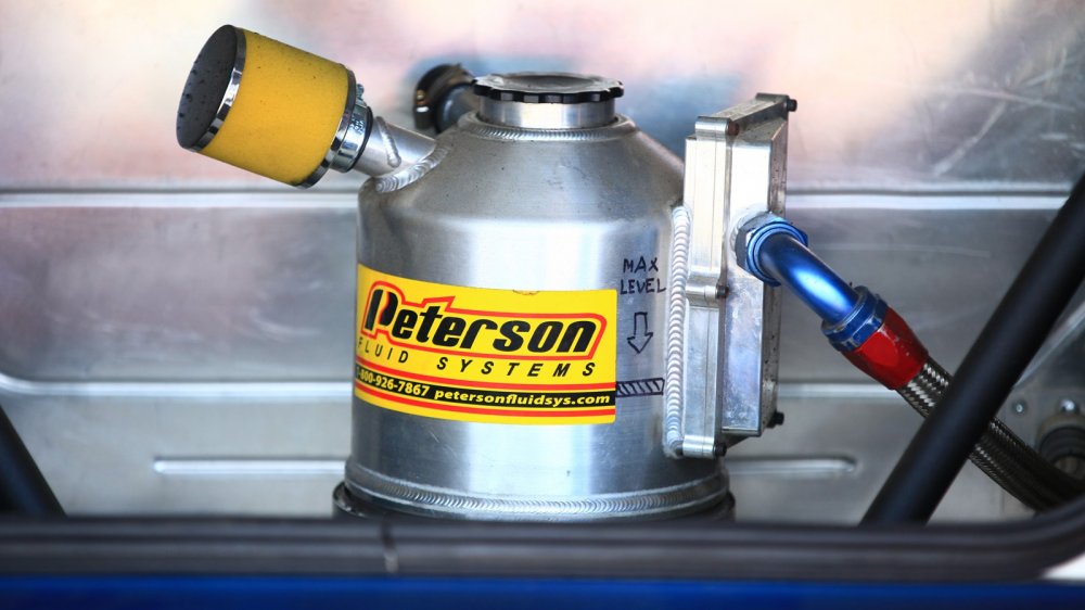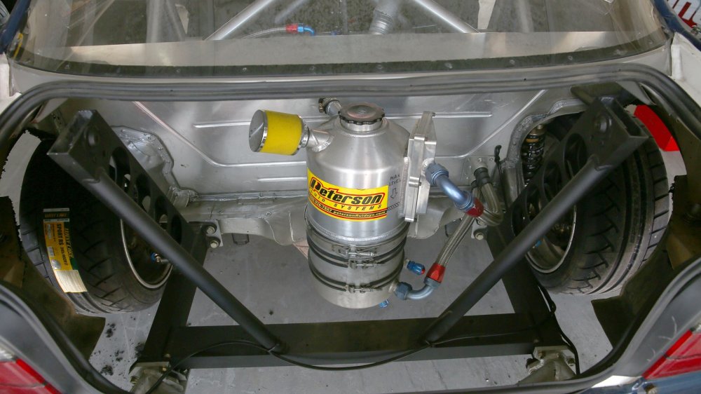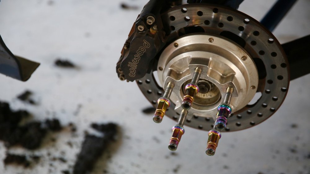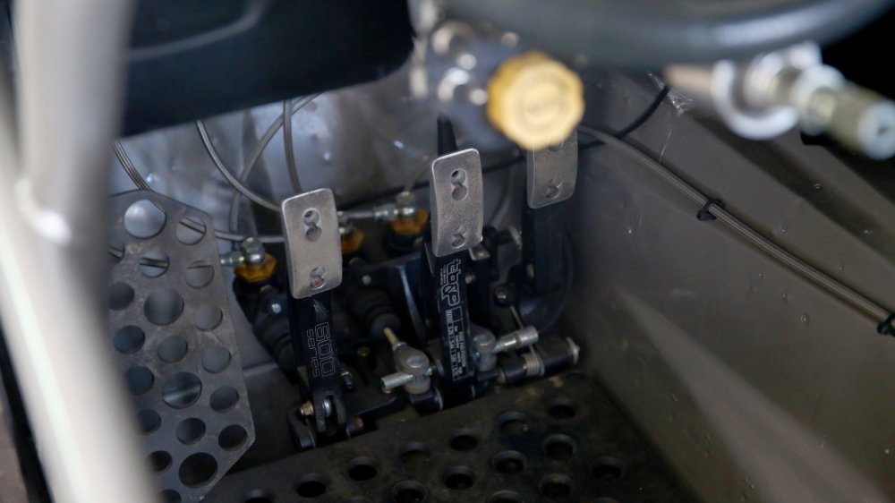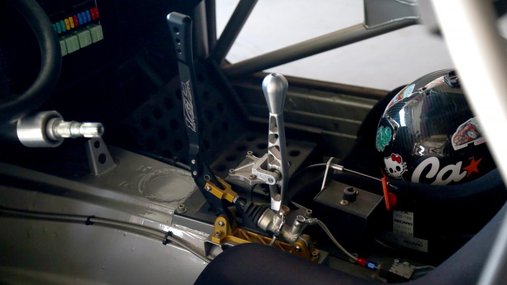 У дрифт-каров обычно удалены тросиковые ручники, а гидравлические дают соответствующий результат только фиксатором ручки. Фиксаторы же, в свою очередь, часто ломаются – то есть надежного стояночного тормоза у болидов просто нет. Проблему решили интересным способом: в тормозную линию задней оси врезан шаровый кран, который можно закрыть, натянув ручник, и тогда ось останется заблокированной. Теперь на прицепе во время смены колес и в других внегоночных ситуациях есть надежный способ зафиксировать колеса.