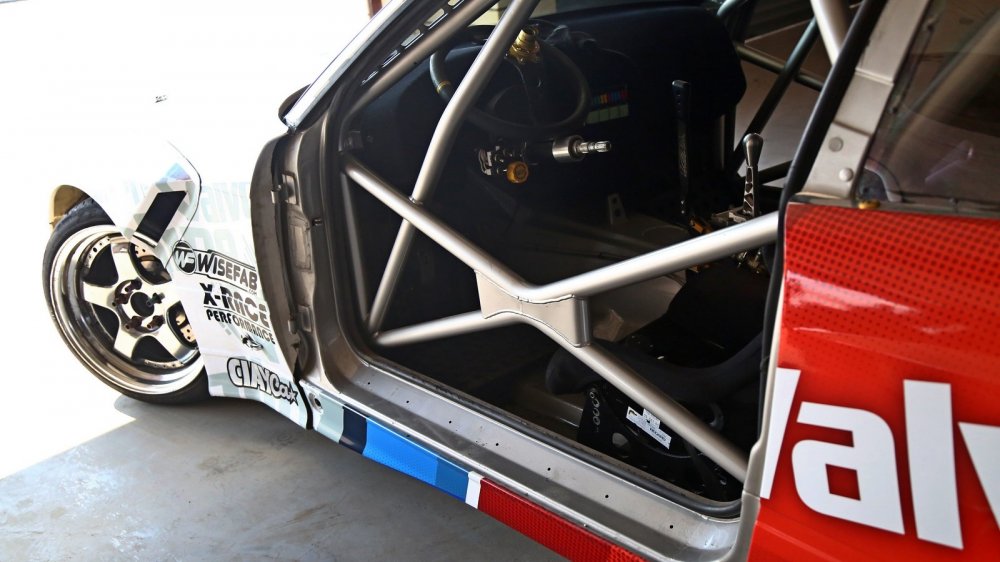 Украшает BMW боди-кит HGK Evolution с монолитным капотом, передней панелью и крыльями, уникальные накладки на передние крылья и спойлер HGK, а также карбоновый люк. Все детали кузова «немки» – на шплинтах и спортивных замках, а задний бампер закреплен на крыльях через пружинки, для подвижности при так называемых «kiss the wall» – касаний стены во время контролируемого заноса.