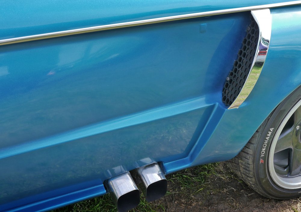 Поскольку разница в размере колеи двух машин тоже заметна (16-17 см), колесные арки пришлось соответствующим образом расширить. Сзади это получилось проще благодаря ставшему по сути ненужным каналу воздухозаборника, а спереди пришлось мудрить более откровенно – используя накладки-расширители. Места сращивания двух кузовов соединяли сваркой и усиливали для сохранения несущей способности. Сопряжения наружных панелей выполняли из стеклопластика.