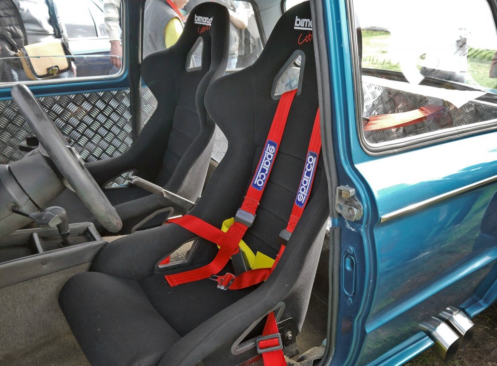 Естественно, интерьер дрифт-кара, задуманного как средство отвести душу, не мог остаться «запорожским». Развернутое к водителю торпедо в сборе перекочевало в салон «ушастого» с той же Е21. Для двух передних седоков поставили сиденья-«ковши» – не очень глубокие, такие, чтобы в них было более-менее удобно садиться.