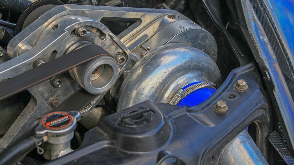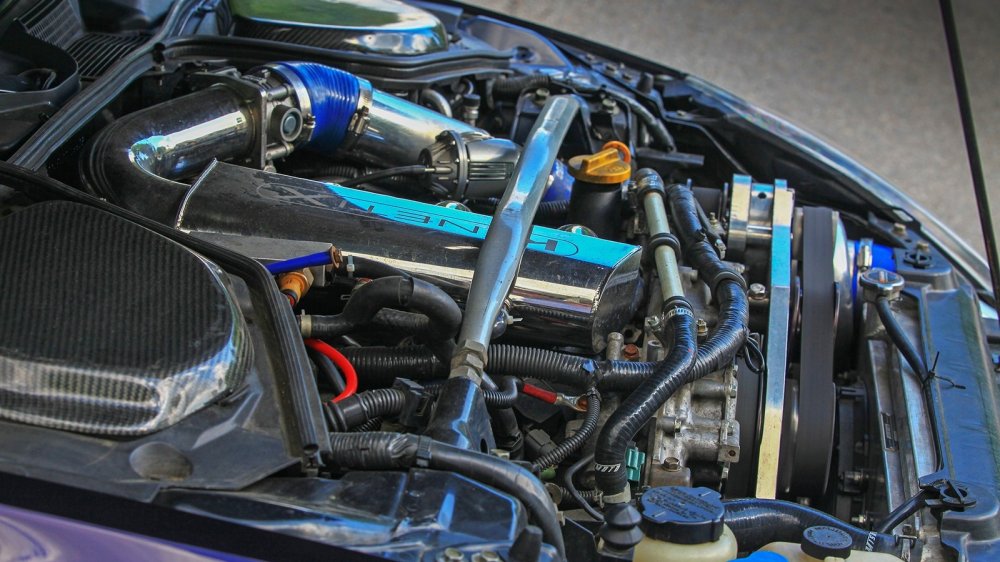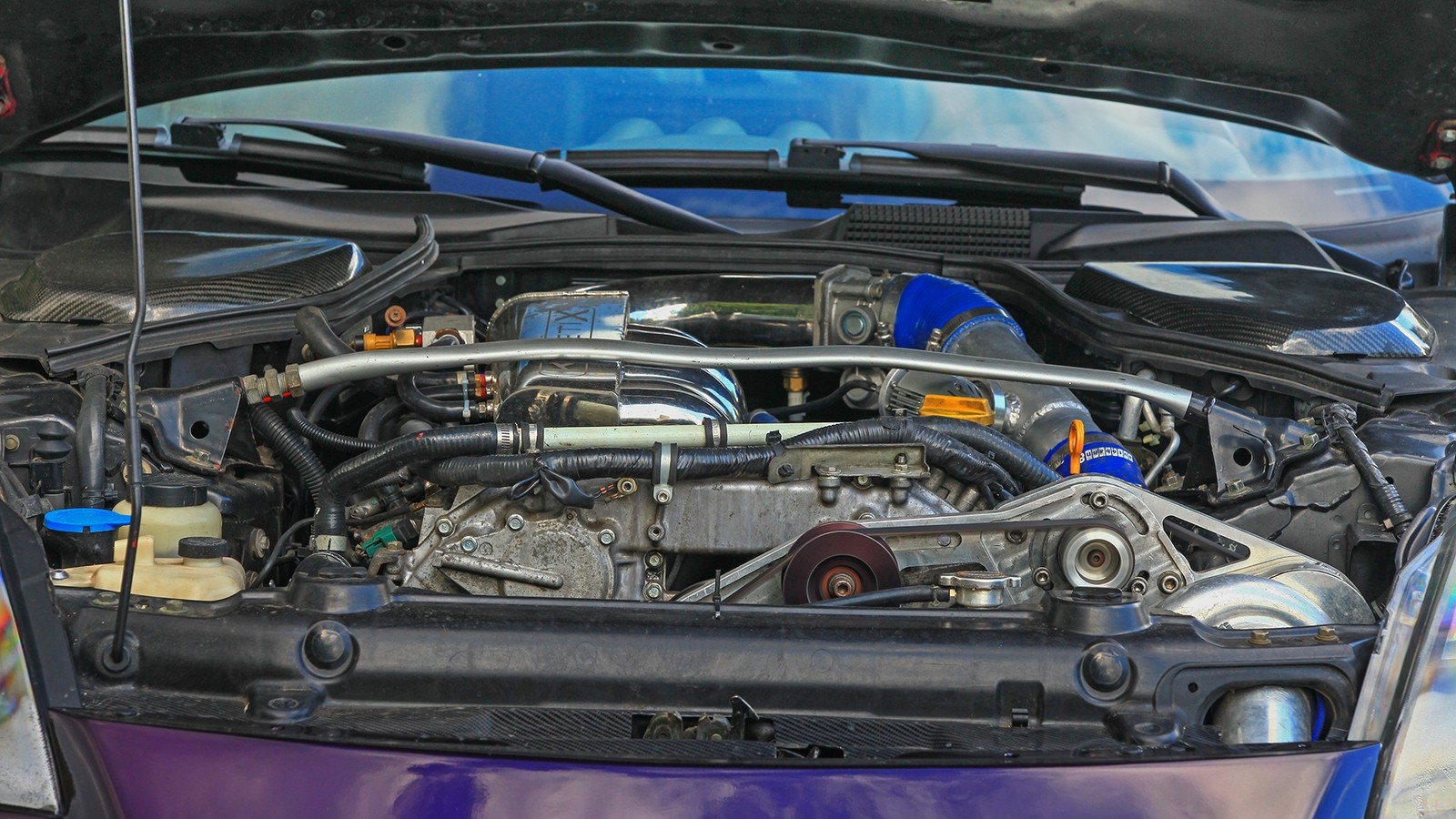 А потом, волею случая, судьба свела Антона с ребятами из третьего ателье, где он до сих и продолжает строить «баклажан». Такое название машина получила за новый нестандартный цвет, в который в итоге перекрасили Ниссан. Проблему с мотором решили, купив еще один компрессор и собрав из двух один, поменяв при этом все подшипники и выточив новые шкивы, а также сделав дополнительные упоры и крепления плиты компрессора к мотору. Перегрев АКПП устранили, поставив кулер в общий «сэндвич» с вентиляторами Spal.