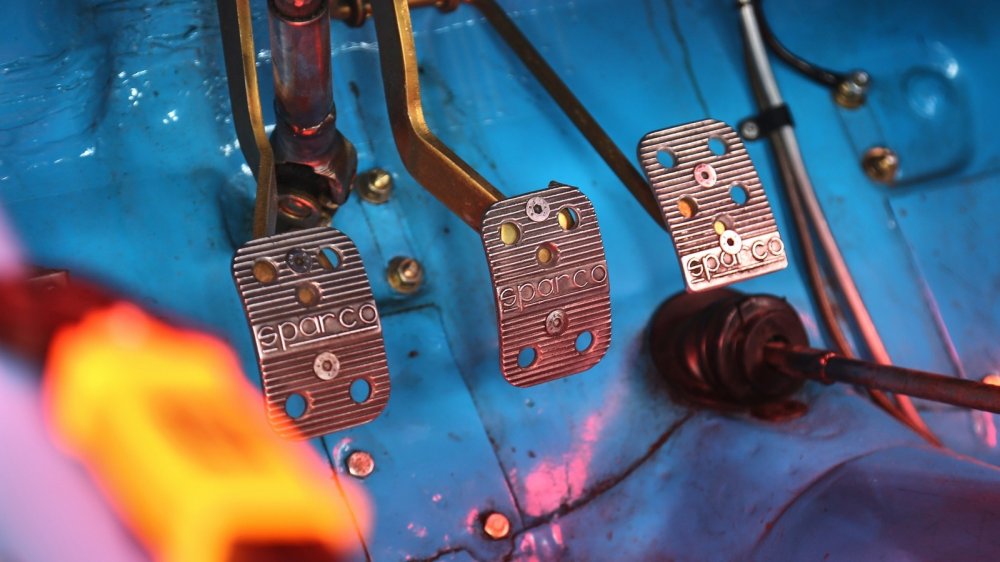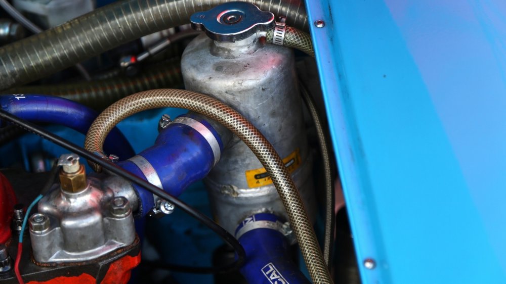 Чтобы на автомобиле можно было принимать участие в соревнованиях, его предстояло подготовить к гонкам с соблюдением всех требований по омологации. Мотор доработали, модифицировав головку блока цилиндров и установив спортивный распределительный вал. На впуске – горизонтальный карбюратор Weber DCOE 45, который получает топливо от современного электрического бензонасоса, а воздух – через спортивный карбоновый короб. По требованиям технической комиссии стандартный бензобак заменили на спортивный 25-литровый. Его хватает на 30–50 минут гонки, в зависимости от темпа движения. Систему выпуска отработанных газов полностью изготовили самостоятельно из труб диаметром 48 мм. Конечно, можно изготовить выпуск и на большей трубе, но строгие требования исторического класса в ралли обязывают максимально соответствовать исходным техническим данным автомобиля. Еще одна из модернизаций, навеянных временем, – электрический вентилятор системы охлаждения. В новом исполнении двигатель выдает около 140 лошадиных сил.