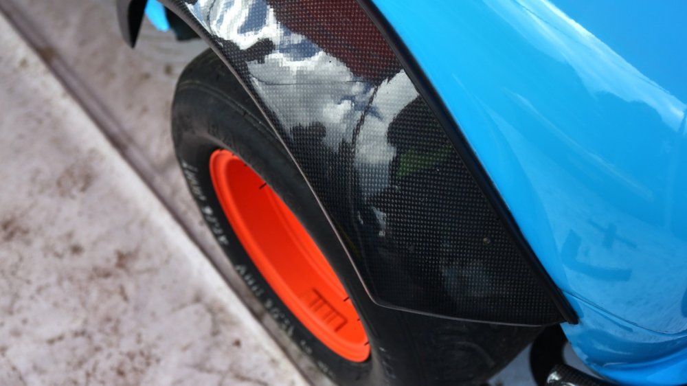 Кузов автомобиля также подвергся доработкам. Добавили бамперы, а для уменьшения веса капот и крышку багажника изготовили из стеклопластика и установили расширители на колесные арки. Чтобы не искажать внешний вид автомобиля, колеса решили оставить стандартного диаметра – 10 дюймов с шинами 205 мм шириной и 70-м профилем.