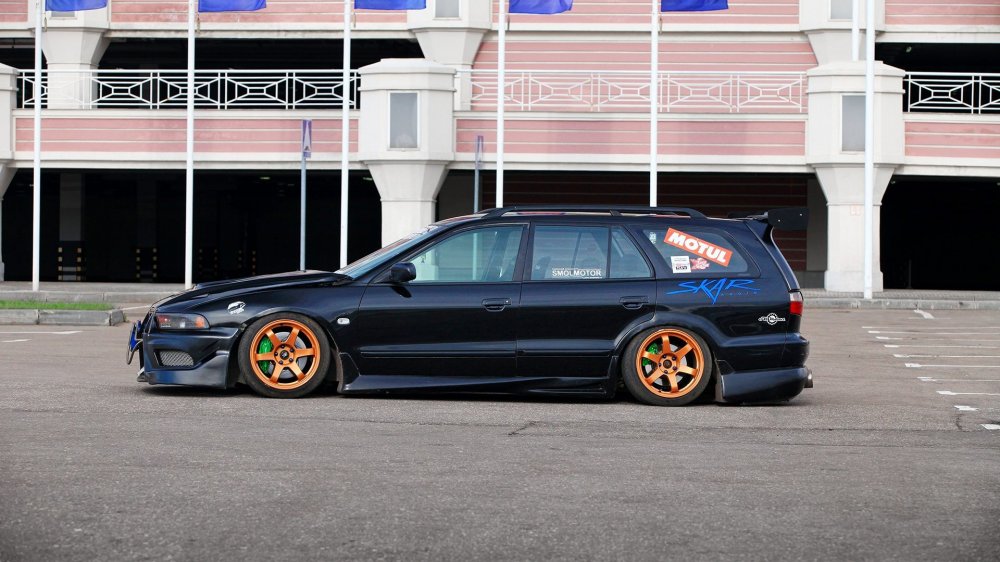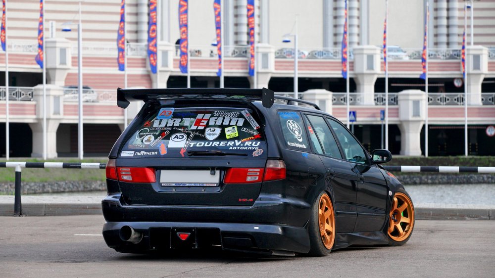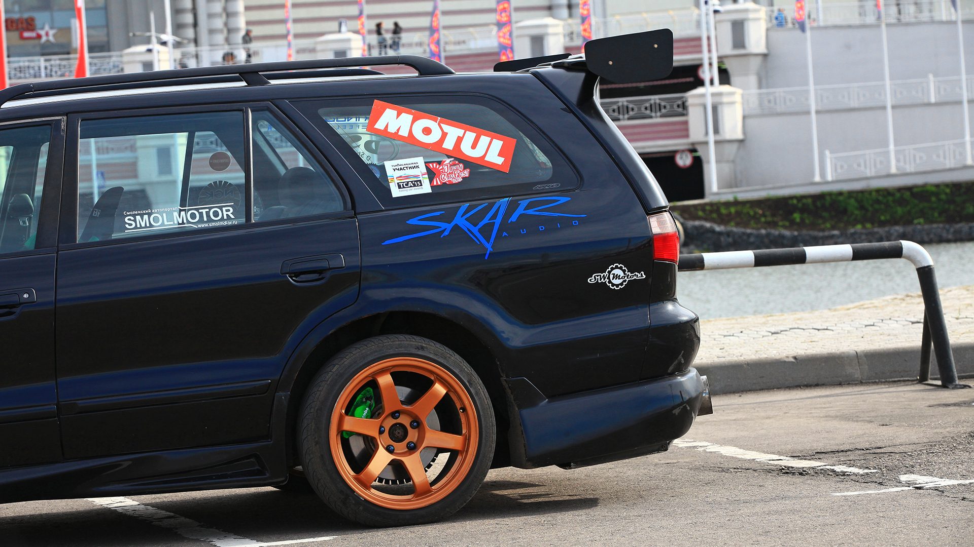 Мы уже убедились, что универсалы – не всегда автомобили выходного дня в смысле поездки на дачу с рассадой в субботу утром. Иногда кузов с «багажником во весь рост» – это отличный вариант для тюнинга. Вот, например, этот Mitsubishi Legnum. Он был полноприводным, но дохловатым. Он был универсалом, но недостаточно впечатляющим. Теперь это турбовый зверь на пневмоподвеске. Дача не отменяется, но в какие-то выходные вместо нее можно поехать… на выставку.