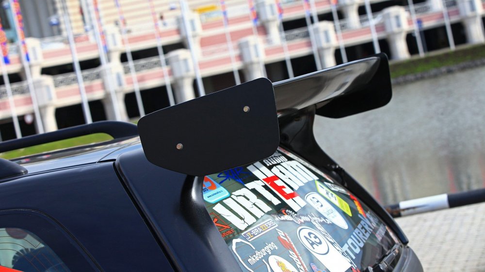 Следующим штрихом в формировании индивидуальности Легнума стала установка порогов Ciber 1. Пришедшие экземпляры оказались короче, чем нужно, почти на два с половиной сантиметра. Что делать? Конечно, греть феном и натягивать! Далее был установлен спойлер Vogue, а на задний бампер добавлена губа G-square и диффузор. Чтобы эти два элемента стали единым целым, губу пришлось пилить под диффузор. Да, с одной стороны, кощунство, но это и есть тюнинг. Следующий элемент стайлинга, капот Monster, шел полгода вместо обещанных двух-трех недель – тут уж, как говорится, хорошо, что вообще приехал.