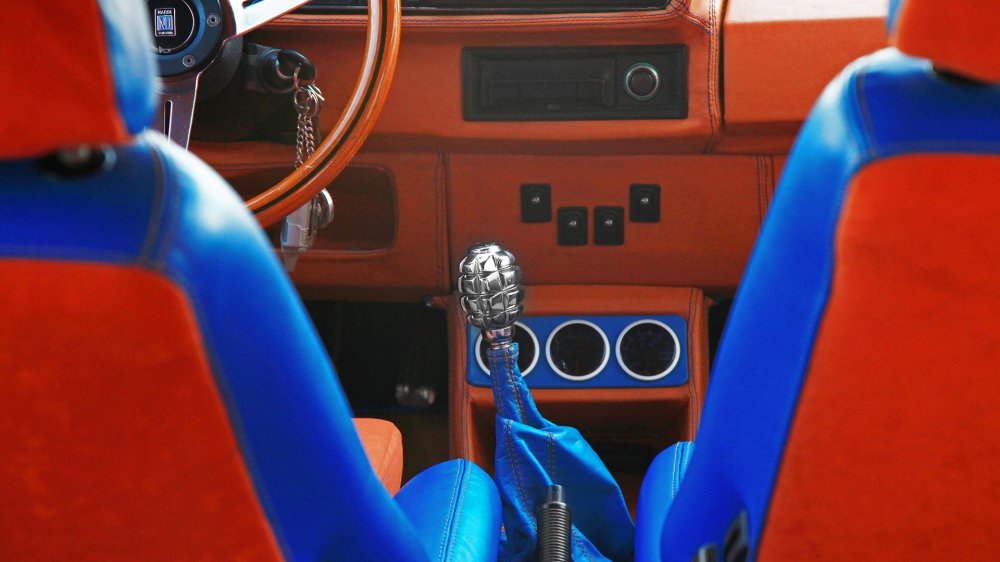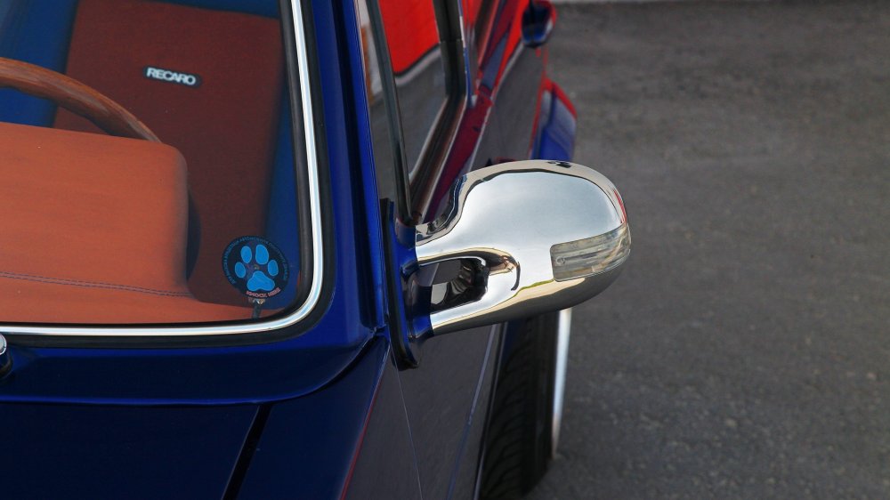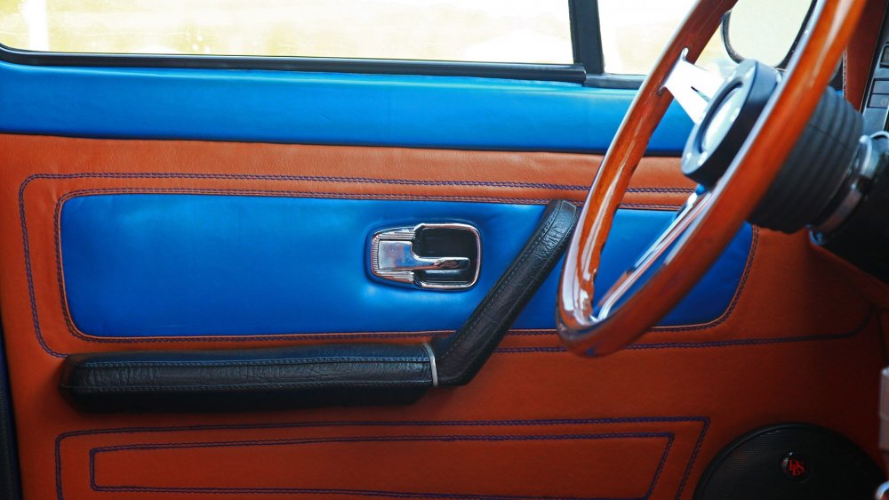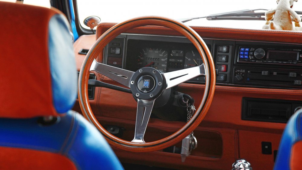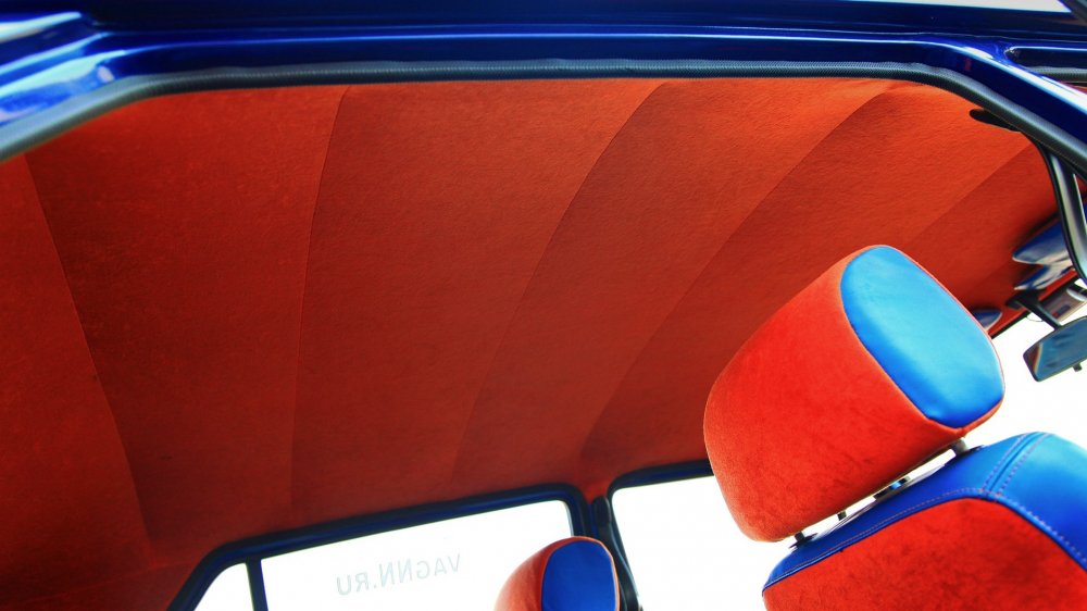 Машина заметно помолодела, и теперь в нее буквально просился обновленный салон. На удачу, друг подарил два передних кресла Recaro, снятых с какого-то Опеля. Ну а дальше – по накатанной: за креслами последовала перешивка их самих и всего салона, включая потолок, под цвет аутентичного руля Nardi, для чего сам владелец ездил в магазин и подбирал материалы, чтобы потом передать их мастеру-профессионалу. Получился стильный коричнево-голубой интерьер. Заодно, в дополнение к стандартным, были установлены более точные дополнительные приборы, показывающие давление масла, температуру охлаждающей жидкости и напряжение сети.