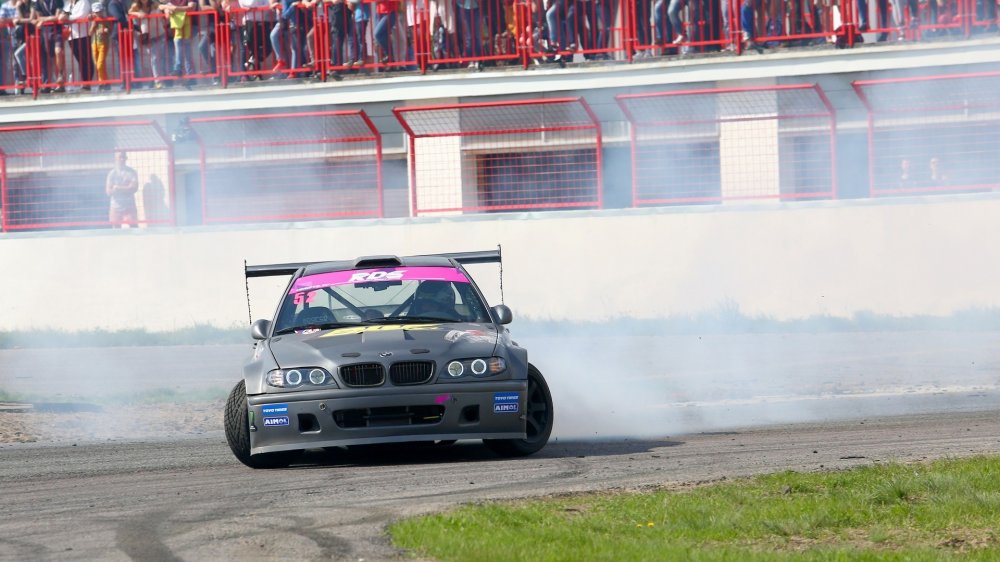 Четвертое поколение модели BMW 3 серии в свое время наделало много шума в автомобильном мире. Однако на первом этапе Российской Дрифт Серии на гоночной трассе ADM Raceway не меньше шума наделал автомобиль из нашего сегодняшнего рассказа. Причем как в переносном, так и в самом прямом смысле: мощный басовитый звук этого болида заставил многих участников и зрителей всерьез заинтересоваться его технической составляющей.
