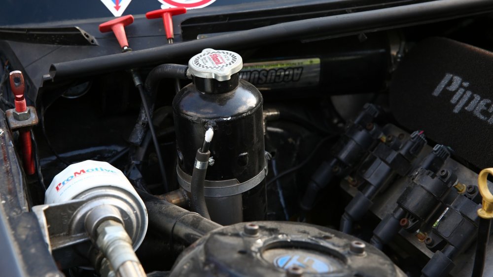 Первым делом в кузов купе вварили каркас безопасности в соответствии с приложением "J" – это довольно стандартный пункт, без него о выступлениях и речи быть не может. А вот затем последовала очередь куда более нестандартного решения, о котором мы намекали в начале. Место штатного двигателя занял настоящий американский «small block», жемчужина Chevrolet Corvette – мотор LS3. Он, оставшись атмосферным, не был обделен вниманием: в него установили строкер-кит (кованые коленвал, шатуны и поршни), что вместе с расточкой блока позволило увеличить рабочий объем с 6,2 л до 7,0 л.