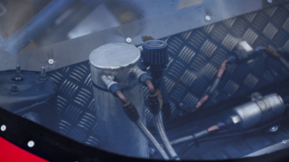 Очередной силовой агрегат он заказал у проверенного продавца из Красноярска. Через неделю двигатель уже был в Москве. Сначала поменяли сальники и прокладки, добавили новый коллектор, турбину и вестгейт к ней, а также навесили коробку передач. Далее установили все имеющееся в машину и с помощью силиконовых трубок подключили радиатор с двумя электрическими вентиляторами. Подачу и обратку гидроусилителя руля, схему охлаждения масла и топливную систему собрали на армированных шлангах, а дополнительно установили кулеры для охлаждения. Выпуск изготовили из трубы диаметром 76 мм и направили от турбины сразу в крыло, вварили лямбда-зонд. Новый бензобак и противоотлив топлива также изготовили сами, сварив их из алюминиевых листов.