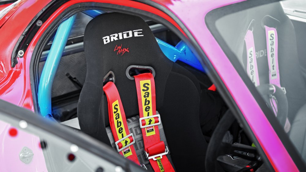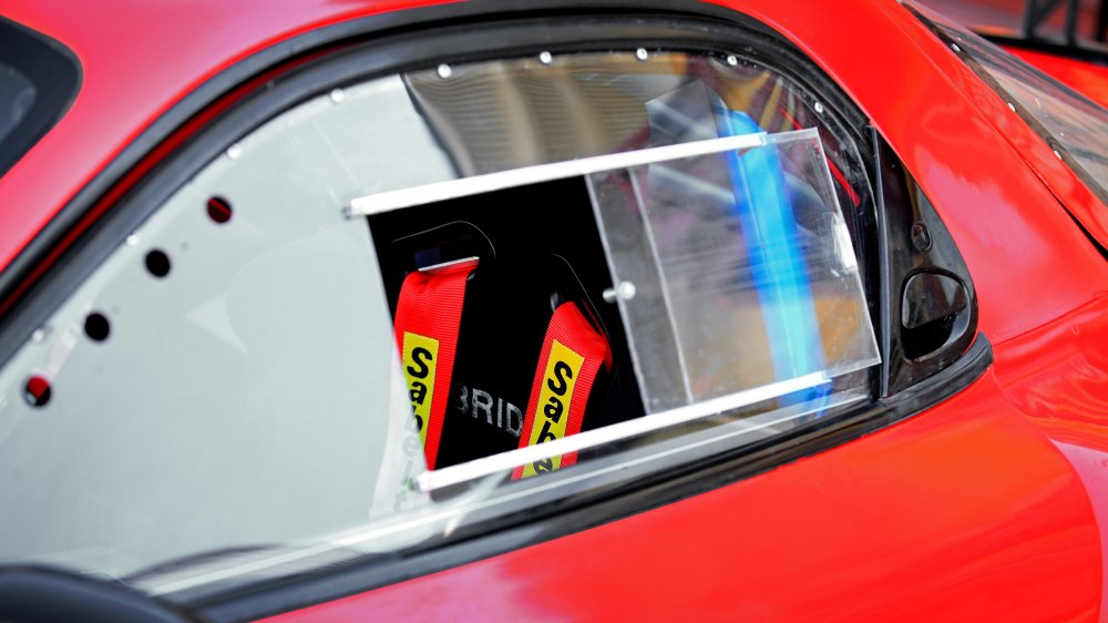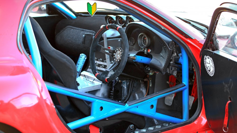 Как мы помним, прошлый владелец уже отпилил заднюю и переднюю части кузова по самые стаканы. В эти места внедрили «баш-бар» – специальную трубную конструкцию с функцией противоударной защиты. Из салона полностью удалили обшивку, оформив интерьер по принципу «если это не помогает ехать, это здесь не нужно». Двери выпилены изнутри, стеклоподъемники удалены: ничего лишнего – только самое необходимое. Аккумулятор развесовки ради был перемещен в салон. И повсюду – легкость, легкость: обвес BN-sport, придавший «Рыксе» неслабое расширение в +50 мм, – это пластик, все стекла, кроме лобового – из поликарбоната, капот и крышка багажника – тоже пластиковые. Со всем этим Мазда и правда стала заметно легче.