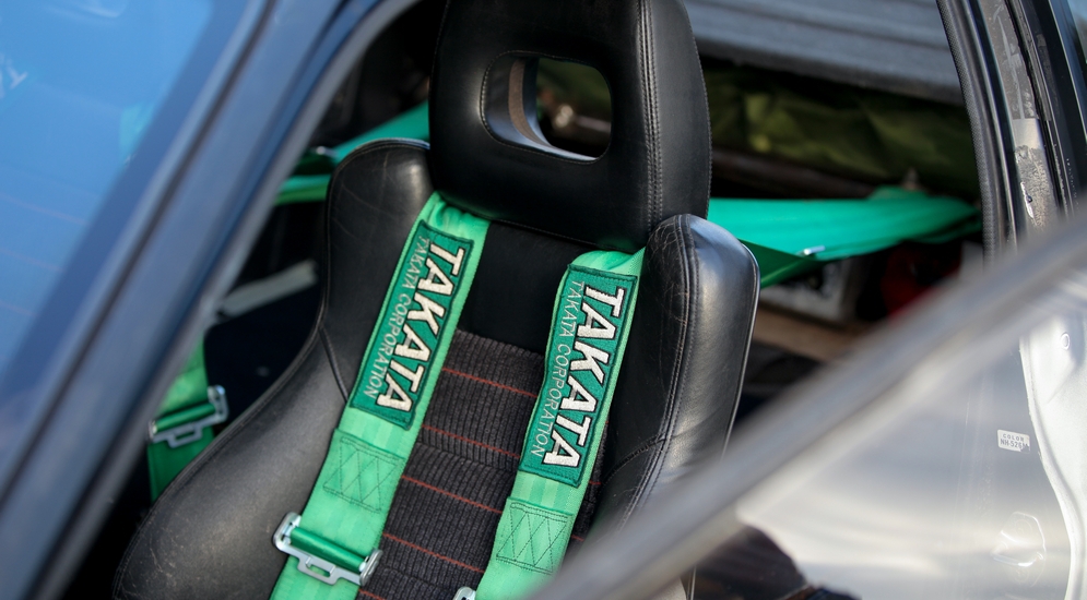 Машина ни разу не была (и не будет) в сервисе: все работы Миша делает сам. Да-да, абсолютно все – от переборки двигателя и до «каждую железочку нужно снять, очистить от ржавчины до блеска и покрасить, иначе не по фэн-шую». В салоне Михаил расположил кастомную распорку задних стоек с интегрированными креплениями для трехдюймовых четырехточечных ремней безопасности Takata. Еще из интересного – кнопка открытия багажника: система представляет собой симбиоз из распиленного болгаркой брелока от сигнализации, запакованного в кусок резинового шланга, реле и актуатора от сигнализации.
