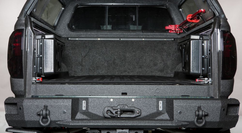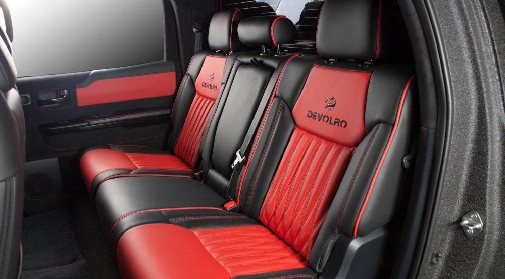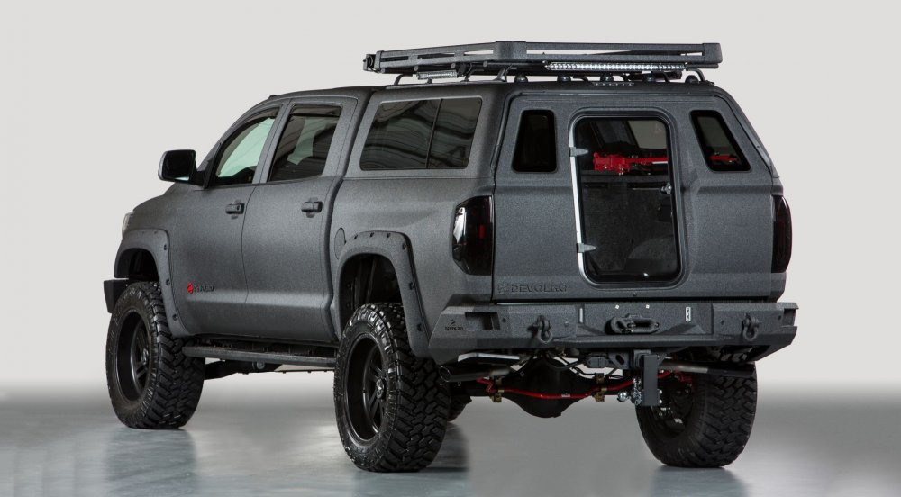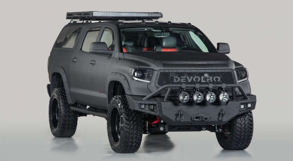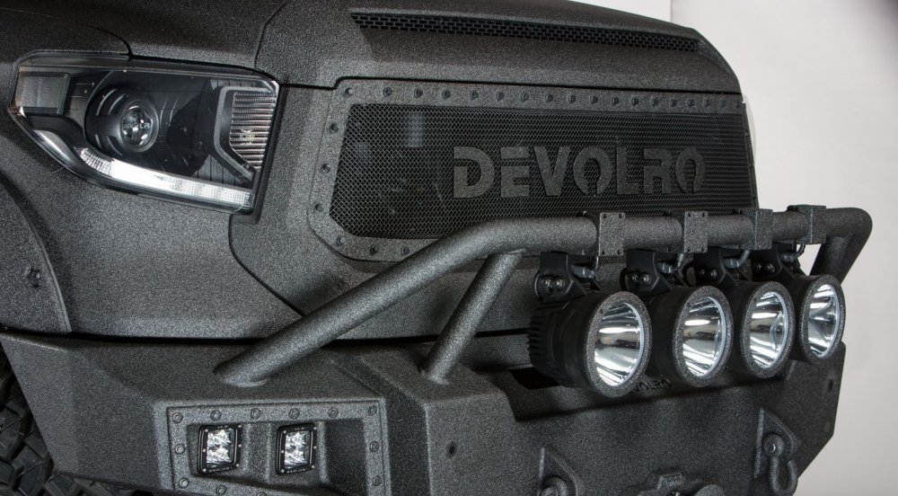 На фото: Devolro Diablo. Создан на базе Toyota Tundra. Кузов автомобиля обработан полимерным покрытием, защищающим его от коррозии и ультрафиолета. Двигатель располагает мощностью свыше 532 л.с.