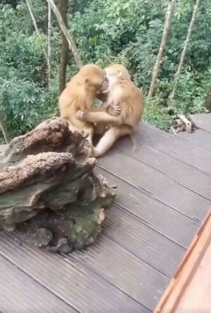 В Китае "человеческий" поцелуй обезьян попал на фото
