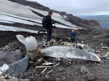 На леднике Эйяфьятлайокудль в Исландии оттаяли обломки разбившегося там 76 лет назад американского бомбардировщика B-17 Flying Fortress.