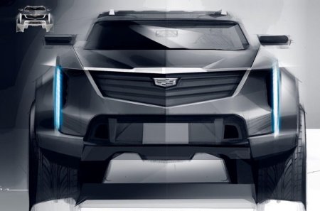 На картинке появился эскиз крупного внедорожника Cadillac с брутальным дизайном.