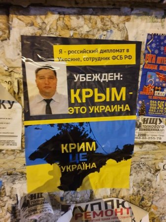 Плакаты с "повинной" появились ночью у посольства РФ в Киеве.