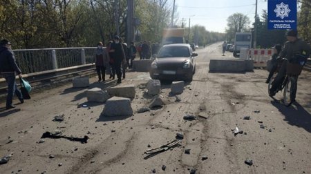 В Славянске авто снесло бетонный блок на мосту