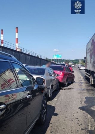 В Киеве на Южном мосту столкнулись шесть автомобилей, сообщает в субботу, 12 июня, патрульная полиция столицы.