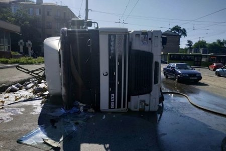 Грузовик с пивом перевернулся в Днепре